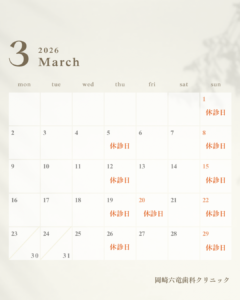 3月診療日のお知らせ☆こんにちは!岡崎六竜歯科クリニックです☆
